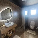 Von einer Terrasse aus kann man einen Ausblick auf die Berge genießen. Zur Ausstattung des Badezimmers gehören auch eine Dusche.